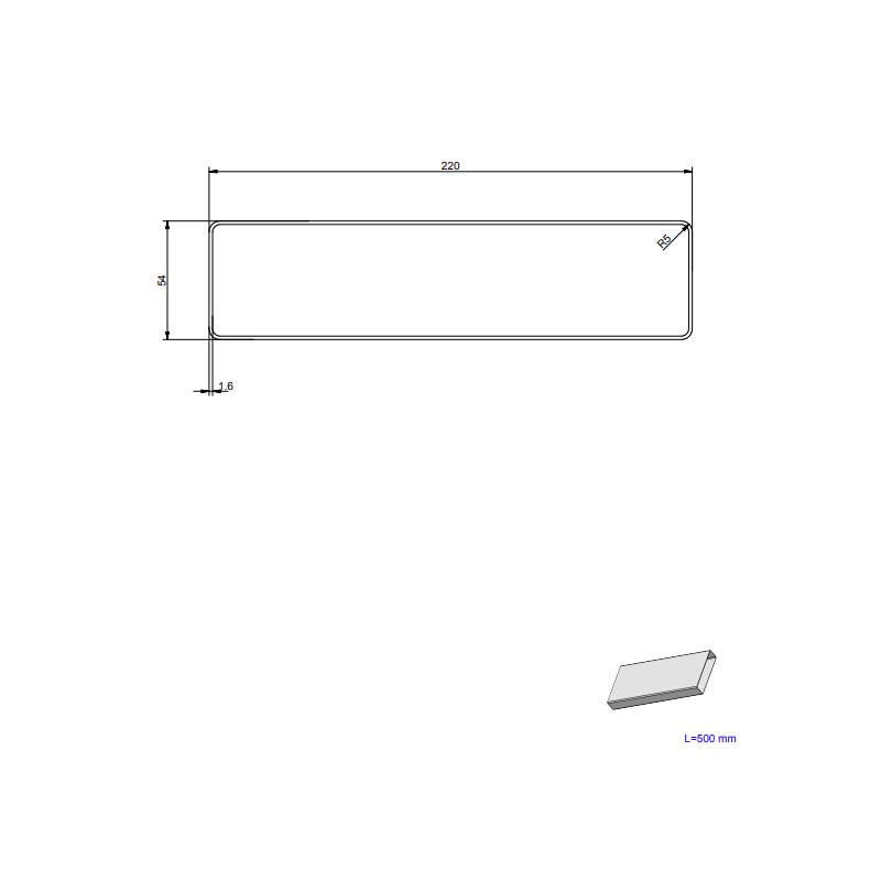 KIT0121012 yra stačiakampis standus ortakis, kurio įleidimo ir išleidimo angų matmenys yra 218 x 55 mm, o ilgis – 50 cm.
