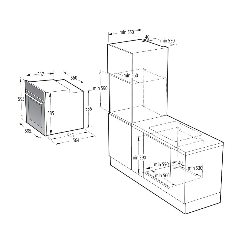 Nišos matmenys (PxAxG): 56-56.4 × 59-60 × 55 cm