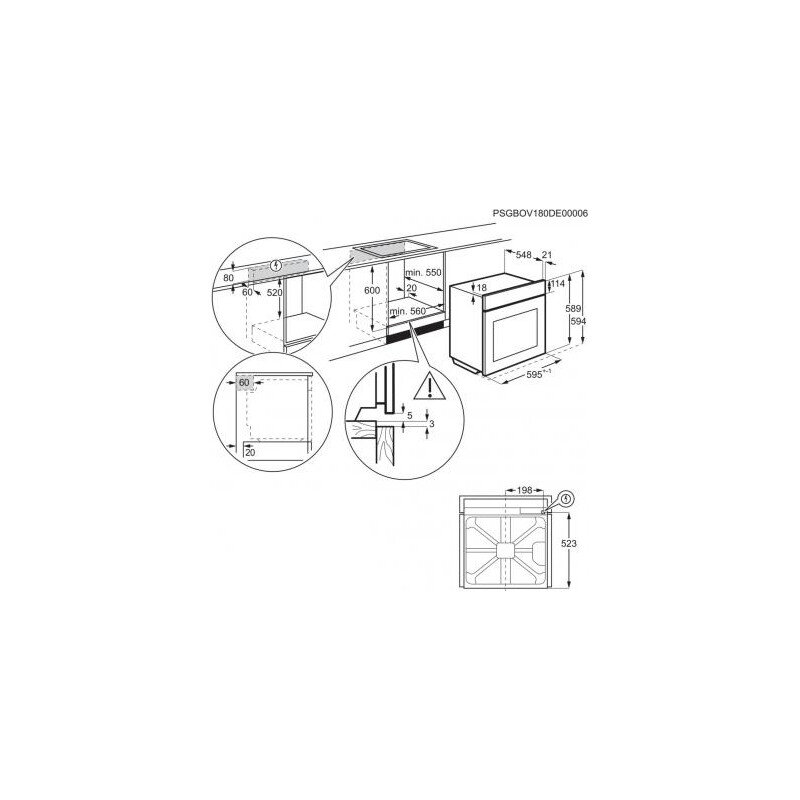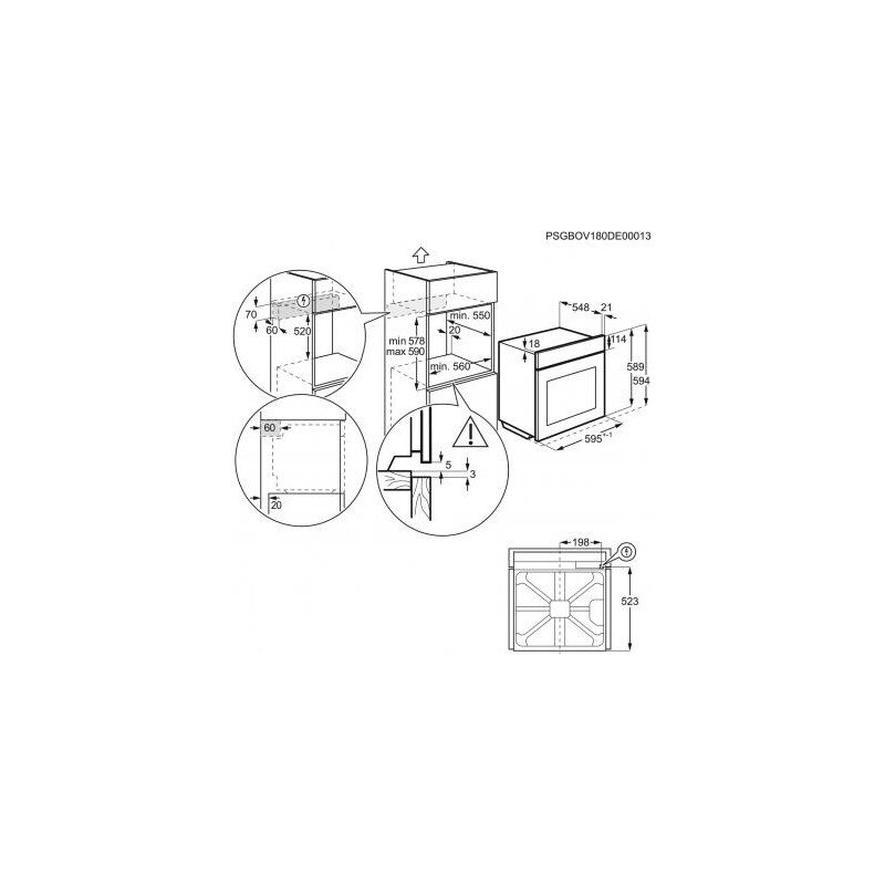 Spalva- Juoda . Orkaitės kaitinimo funkcijos- Apačia, Grilis, Grilis + apačia, Apšvietimas, Žiedinis kaitinimas + apačia, Žiedinis kaitinimas + ventiliatorius, Žiedinis kaitinimas + ventiliatorius (drėgnas), Ventiliatorius + grilius, Ventiliatorius + grilius + apačia, Ventiliatorius + žiedinis kaitinimas, Ventiliatorius + žiedinis kaitinimas + apačia, Ventiliatorius + žiedinis kaitinimas + garai. Mėsos termometras- Yra. Grilio tipas- Elektrinis .Durelių apsauga- Elektroninis užraktas, Automatinis užraktas pirolizės metu .Triukšmingumas, dB(A)- 45. Naudingas tūris, l- 72. Aukštis, mm -594. Plotis, mm- 596. Gylis, mm -569. Montavimo aukštis, mm -600 .Montavimo plotis, mm -560. Montavimo gylis, mm -550. Energijos klasė- A .Energijos sąnaudos statiniam kaitinimui, kWh- 0.93. Energijos sąnaudos su multifunkcija, kWh- 0.69. Maksimalus prietaiso galingumas, W -3380. Maksimalus grilio elemento galingumas, W ž2300 .Energijos sąnaudos budėjimo režime- 0.99. Apšvietimo galia, W -40