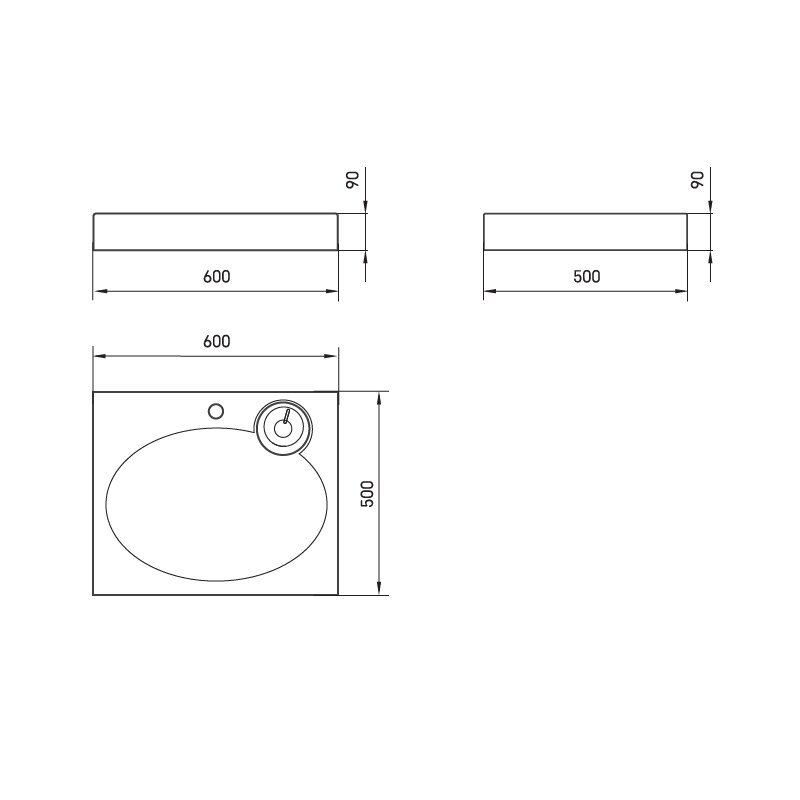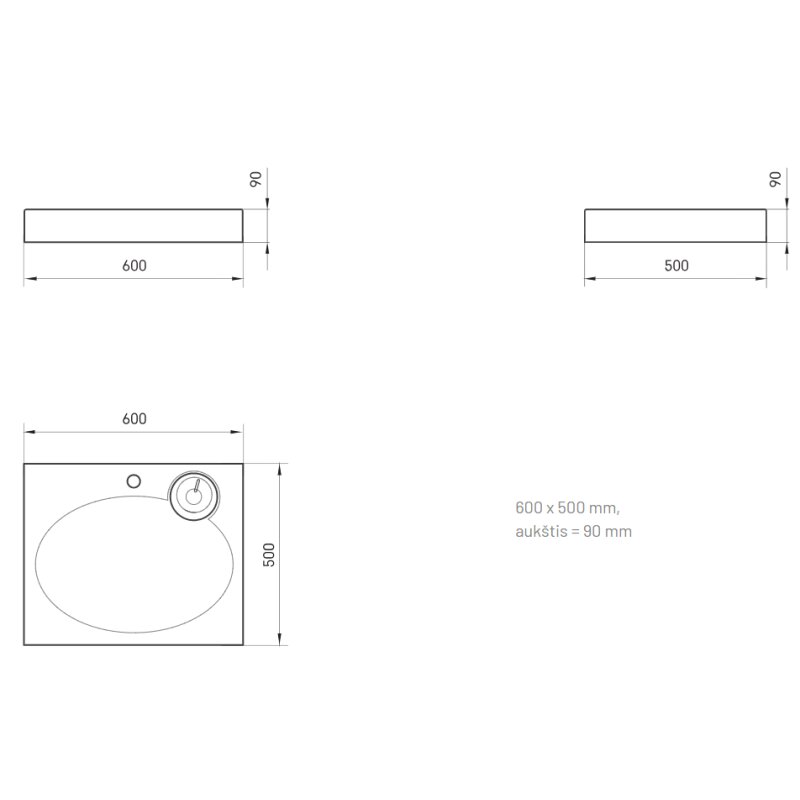 - Matmenys: 600 x 500mm, h - 90 mm