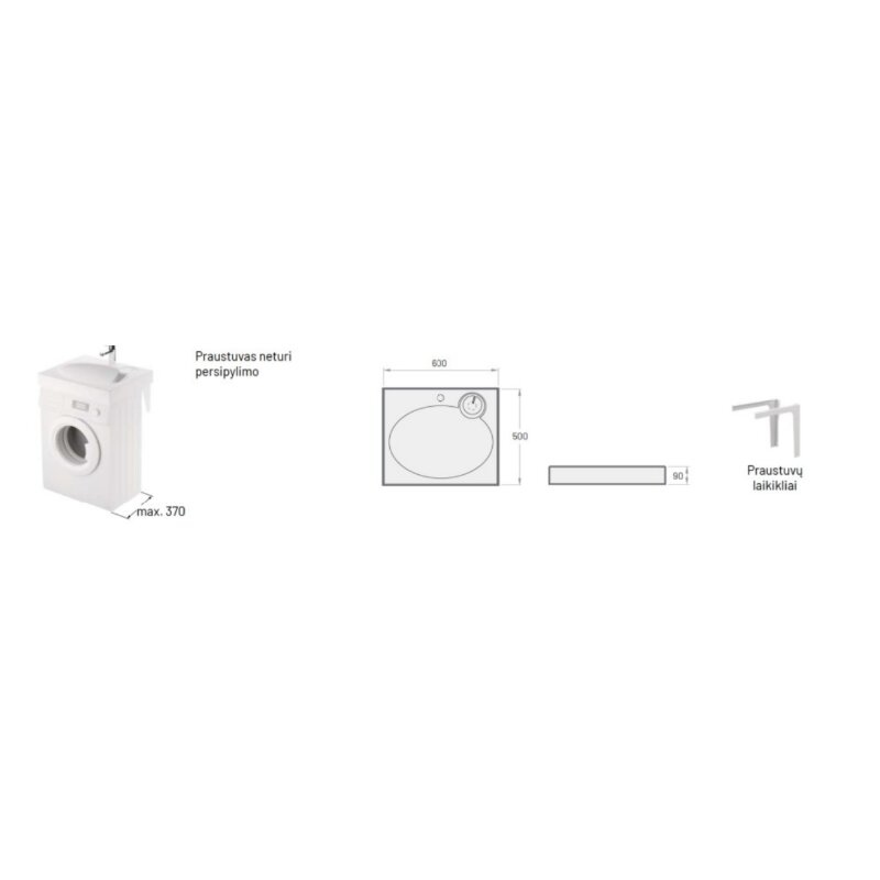 - Tipas: Praustuvas virš skalbimo mašinos