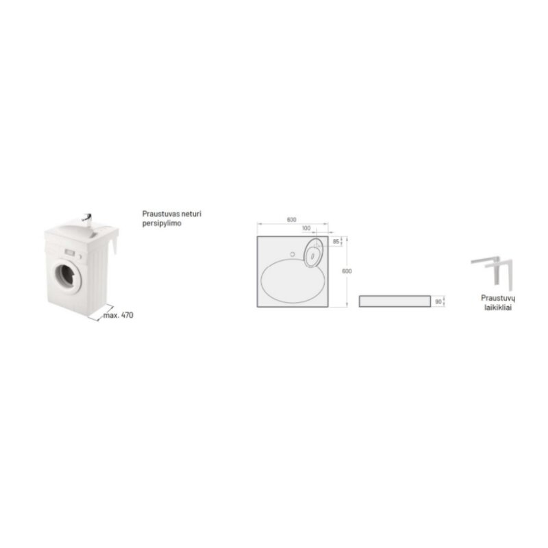 - Tipas: Praustuvas virš skalbimo mašinos