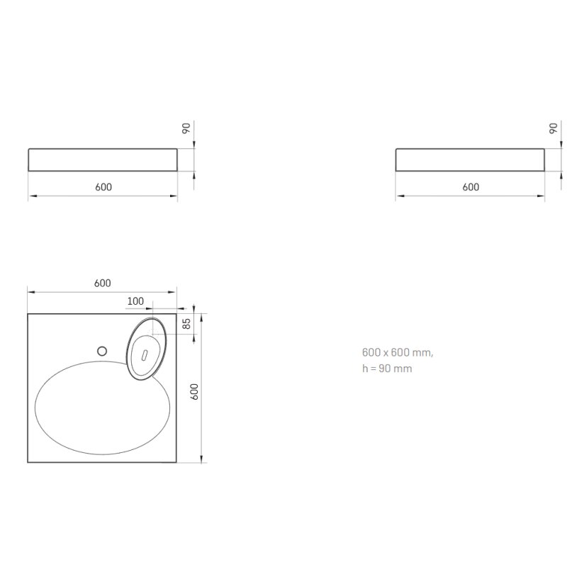 - Matmenys: 600 x 600mm, h - 90 mm