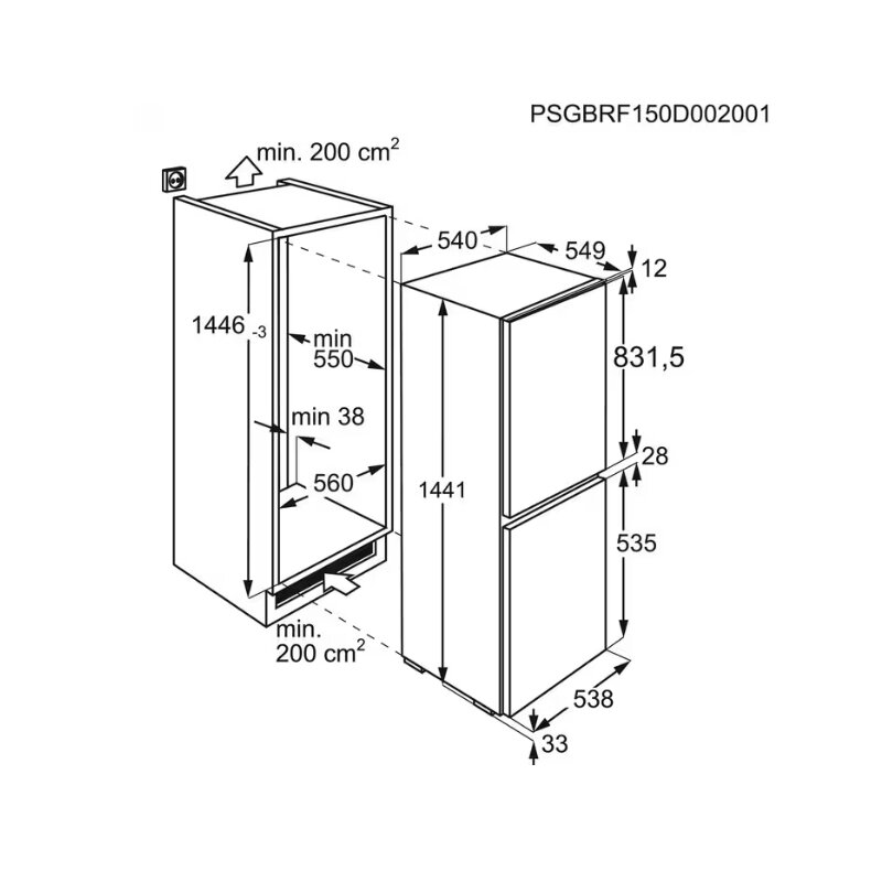 Šaldytuvas Electrolux LNS5LD14S – 144 cm įmontuojamas šaldytuvas su šaldikliu apačioje
