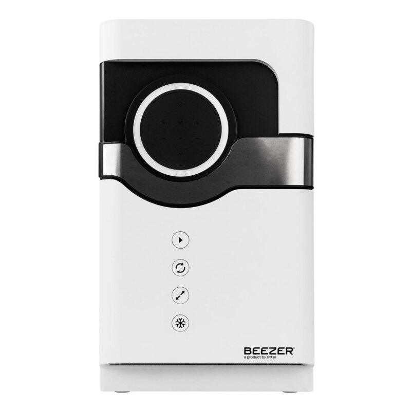 RITTER BEEZER white – revoliucinis stalinis butelių ir skardinių aušintuvas su patentuota momentinio aušinimo technologija. Gėrimai atšaldomi daugiau nei 10 kartų greičiau nei tradiciniu šaldikliu, be ledo, vandens ar kitų aušinimo priemonių. Kompresorinis „pagal poreikį“ aušinimas užtikrina sausą ir švarų rezultatą. Įrenginys pasižymi aukštos kokybės meistriškumu, intuityvia vartotojo sąsaja ir patogia „BEEZER® Connect“ navigacija.